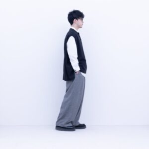 FIRMUM SN_FR0108VT ヒラムジ|コットン&リネン プレーン シーチング オーバーベスト ヘンリーネック [BLACK]