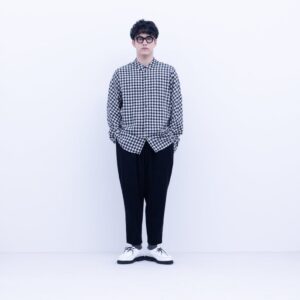 FIRMUM SN_FR1504TP タテコール|ポリエステル・経編コーデュロイ テーパードウェストギャザー 8.5分丈 [BLACK]