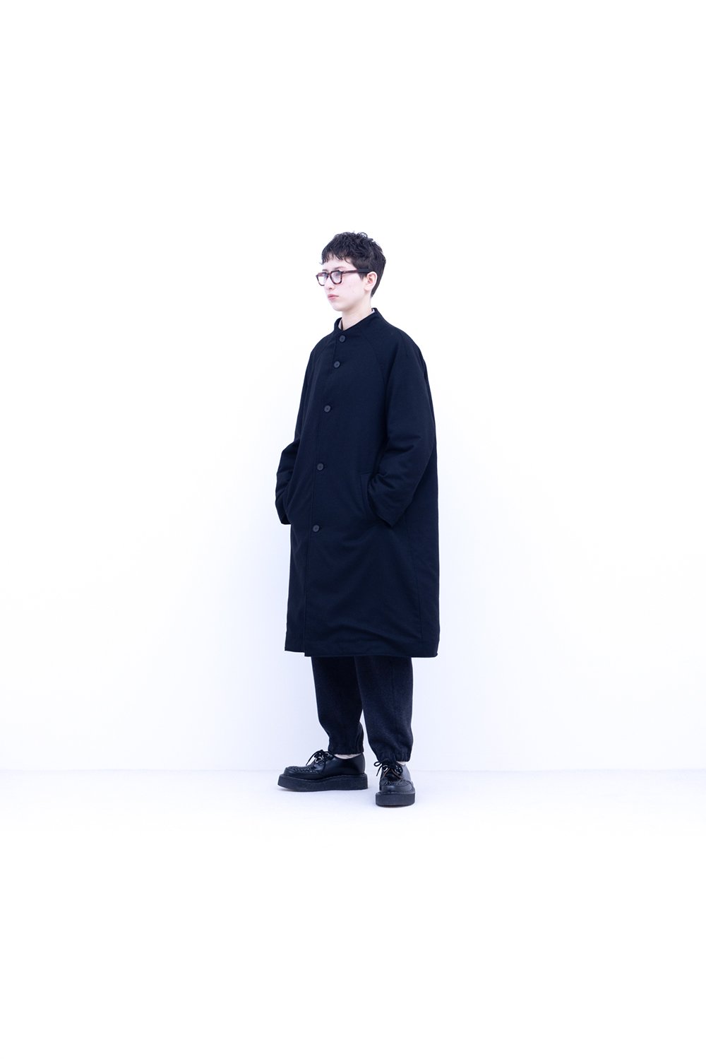 FIRMUM SN_FR1601CT プレウール|ウールシーチング・ガーメントウオッシュ ボトルネックコート ラグランスリ-ブ [DARK GREY TOP]