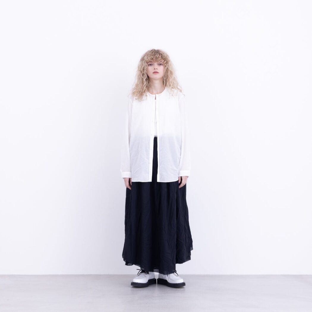DDUD UD01BX_SF ポリエステルライトタフタ・高温高圧製品染め ノーカラーヨークシャツ [WHITE]