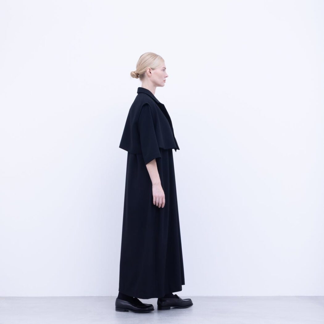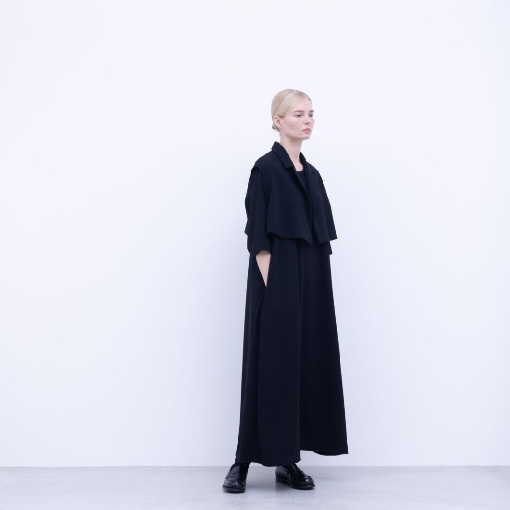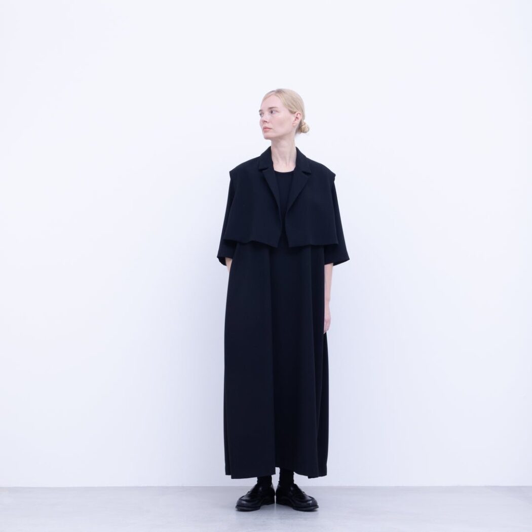 NO CONTROL AIR NK_NC9849VT トリアセテート&ポリエステル・ライトクレープ ダブルクロス テーラードベスト ショート丈 [DEEP BLACK]