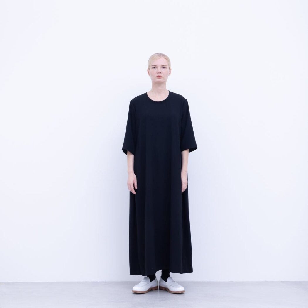 NO CONTROL AIR NK_NC9851OP トリアセ トリアセテート&ポリエステル・ライトクレープダブルクロス 脇タックロングワンピース[DEEP BLACK]