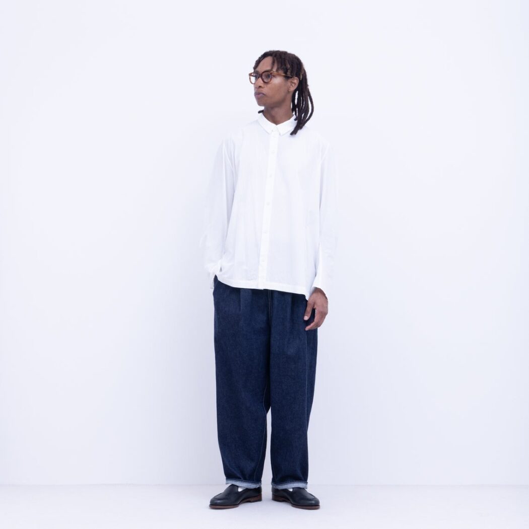 一方でインディゴ染料独特の風合いとアタリによる色合いの変化もインディゴ染めの醍醐味ですので、ぜひ履き込んで経年変化をお楽しみください。