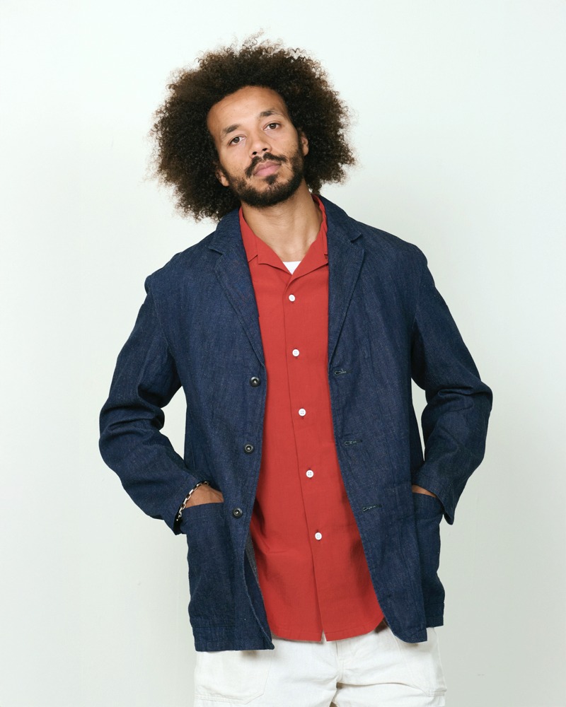 コットンに艶、落ち感のあるレーヨンをバランスよく掛けあわせ掛け、しなやかさの中にも耐久性のある素材です。