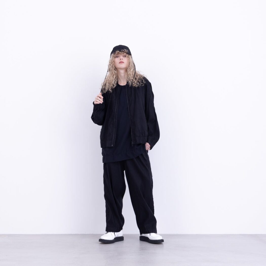 DDUD UD06CH_BN シュリンク高密ナイロンツイル・製品染め トラックジャケット カーブビッグスリーブ[BLACK]