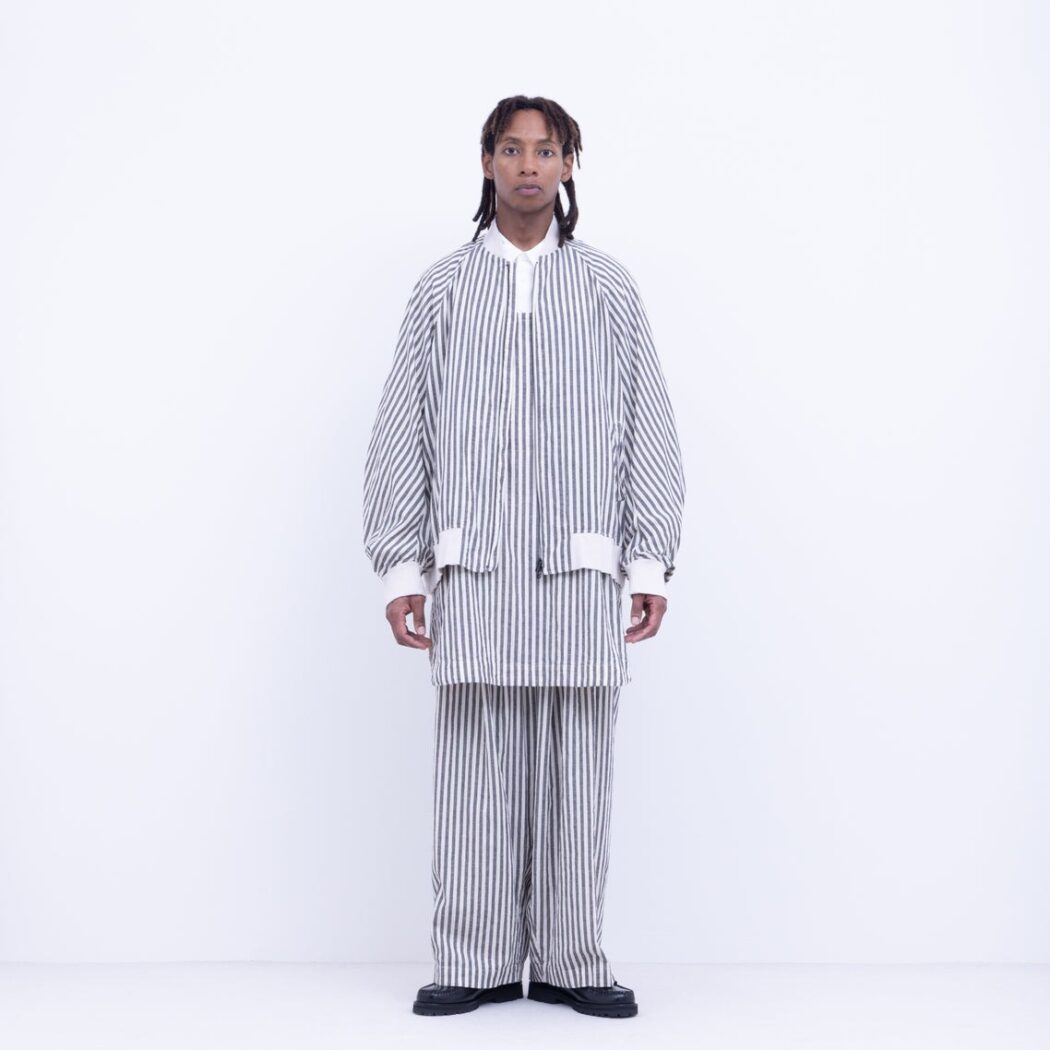 FIRMUM VG_FR0302BN ガラシー コットン・リネン/ストライプ シーチング ビッグスリーブMA-1[NATURAL×BLACK STRIPE]