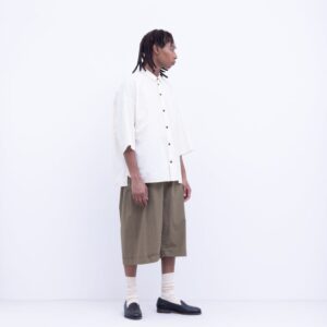 FIRMUM VG_FR0108SH 雷ウェザー 40/1オーガニックコットン・強撚ウェザ- 台襟付きシャツカラー オーバーサイズ 6分袖 [BLUE CHAMBRAY]