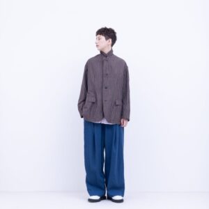 FIRMUM VG_FR1101JK シワドビー リネン&コットン・交番手ドビー テーラードジャケット ドロップショルダー [BROWN×BLUE×WHITE ST]